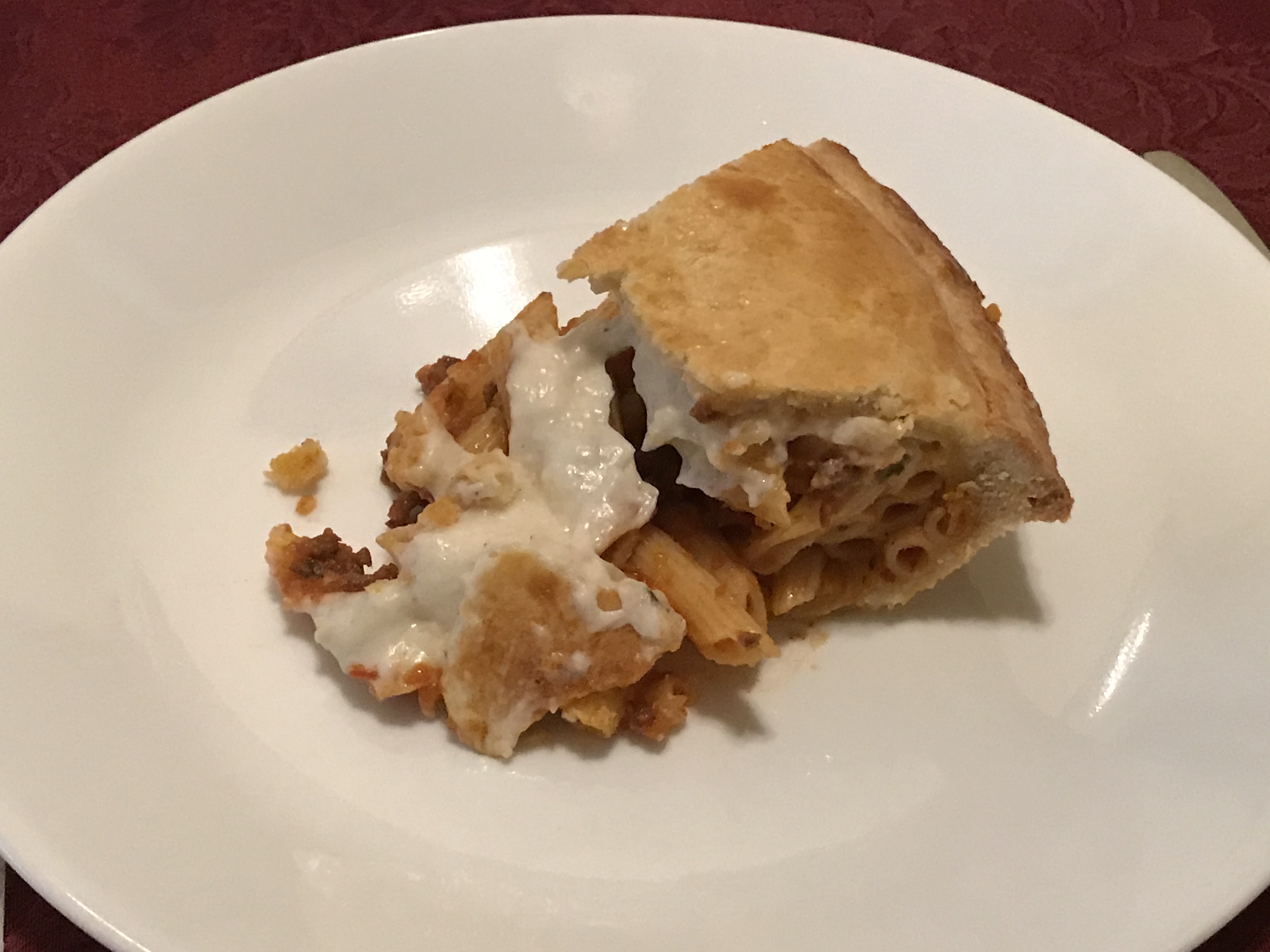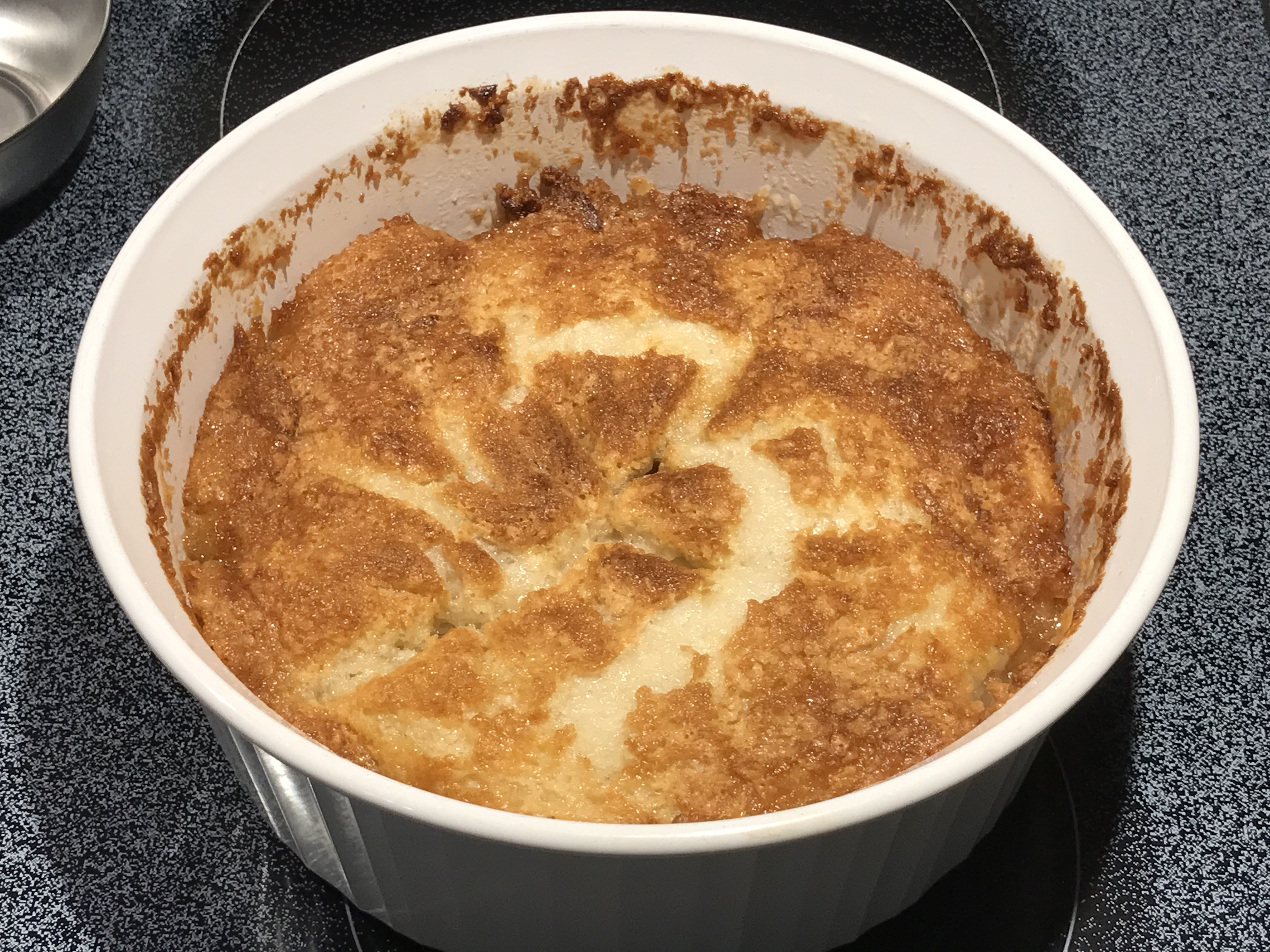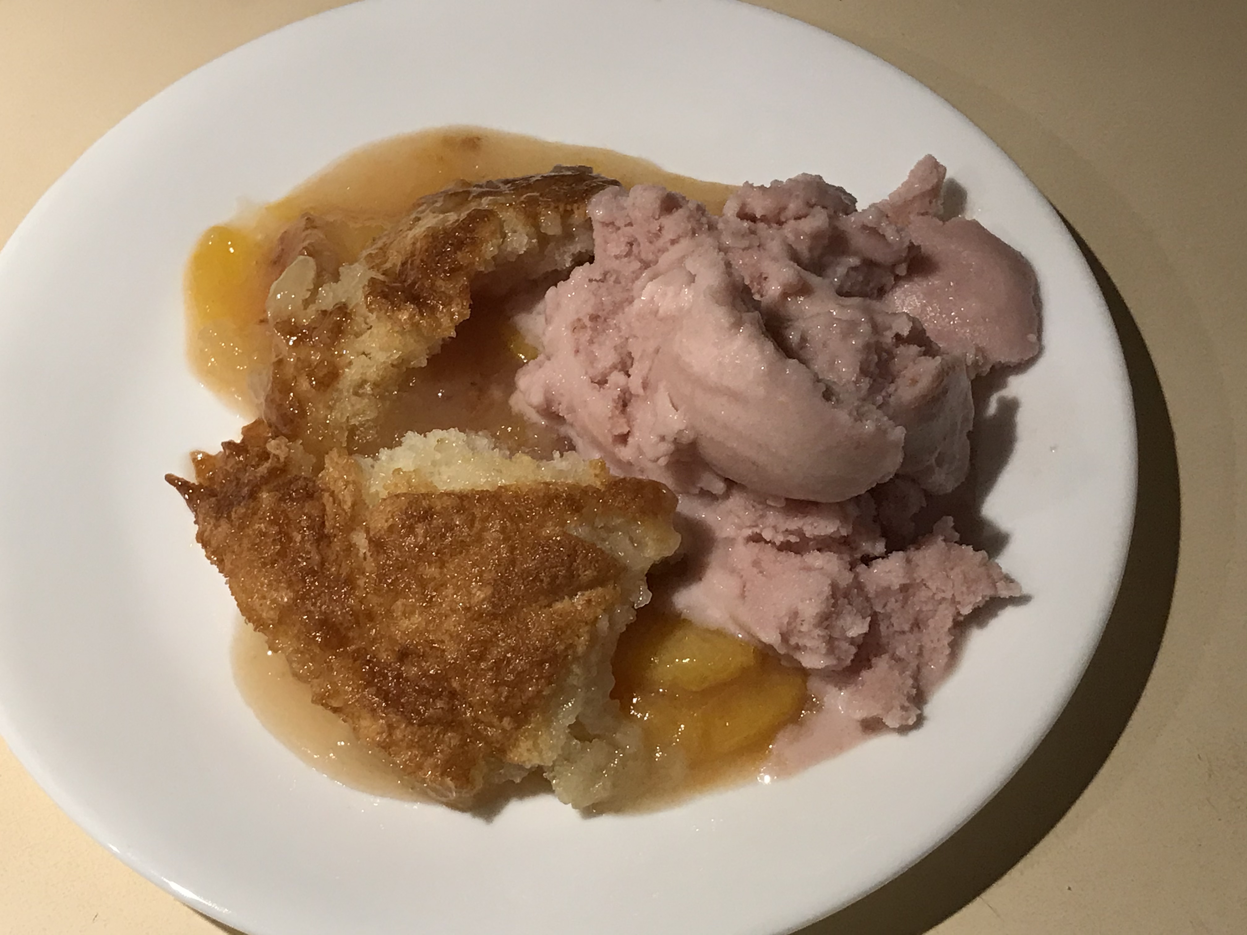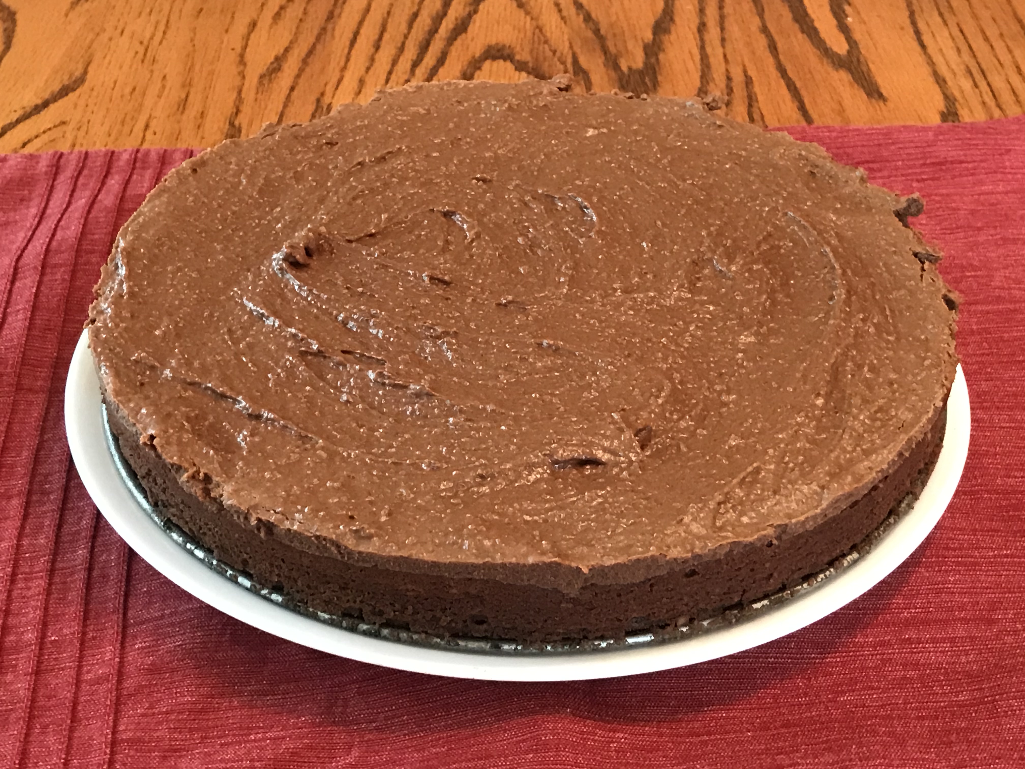 The cake was one of the best desserts from the book. It contains no flour, rather it is held together by ground almonds. The volume comes from adequately beating the butter, sugar, and egg yolks, then, after adding the almonds and melted bittersweet chocolate, carefully folding in the beaten egg whites. Half of the mixture is baked and cooled, acquiring a brownie-like texture. The other half is then spread over the top. After chilling overnight to firm up the mousse, the cake is served. The flavor is perfect, with just the right balance of sweet and bitter. Though excellent as is, a bit of almond extract, some whipped cream, and/or fresh berries to cut through the intensity and richness would be nice additions. But as with the rest of this menu, it’s really hard to go wrong.