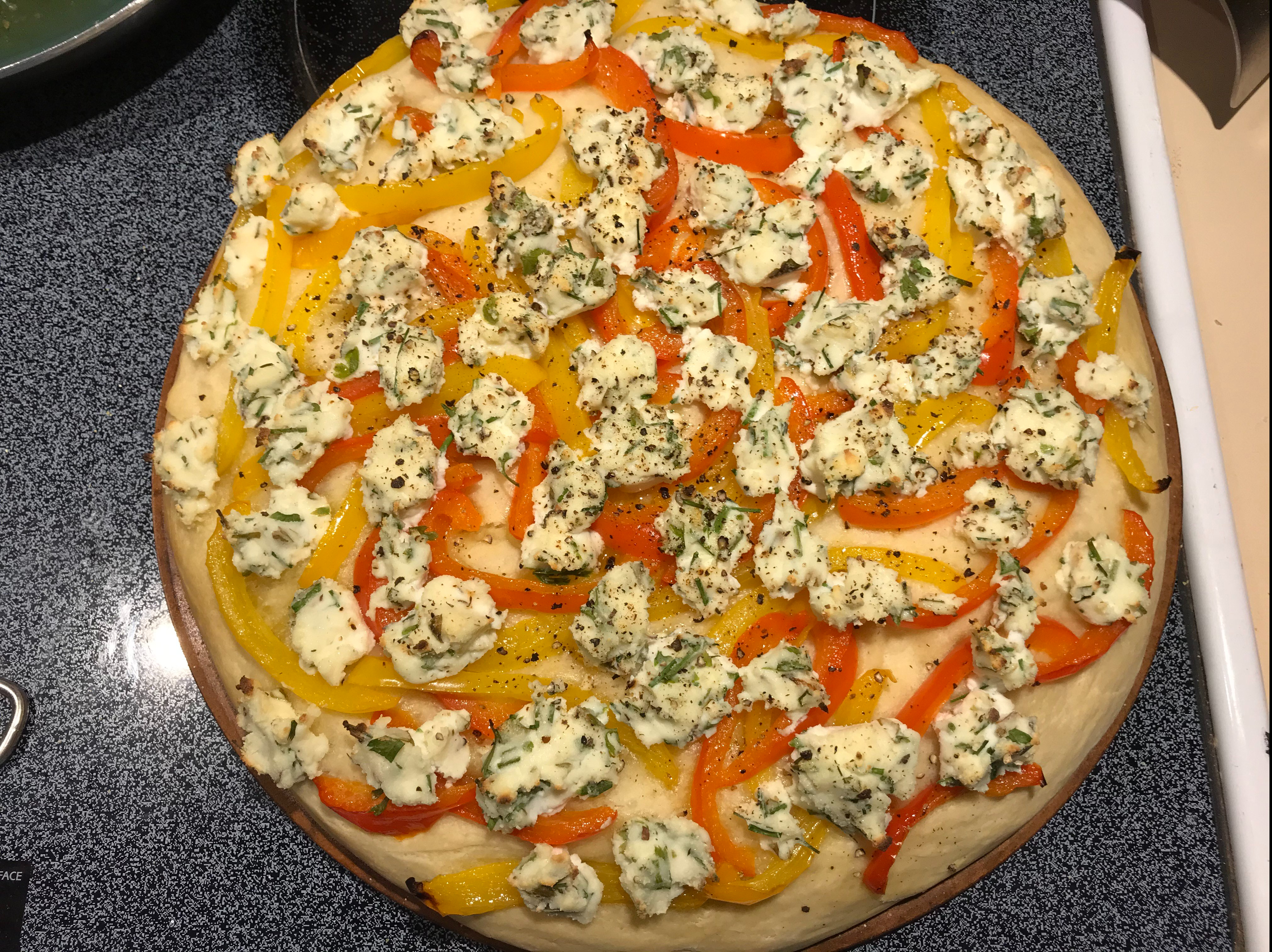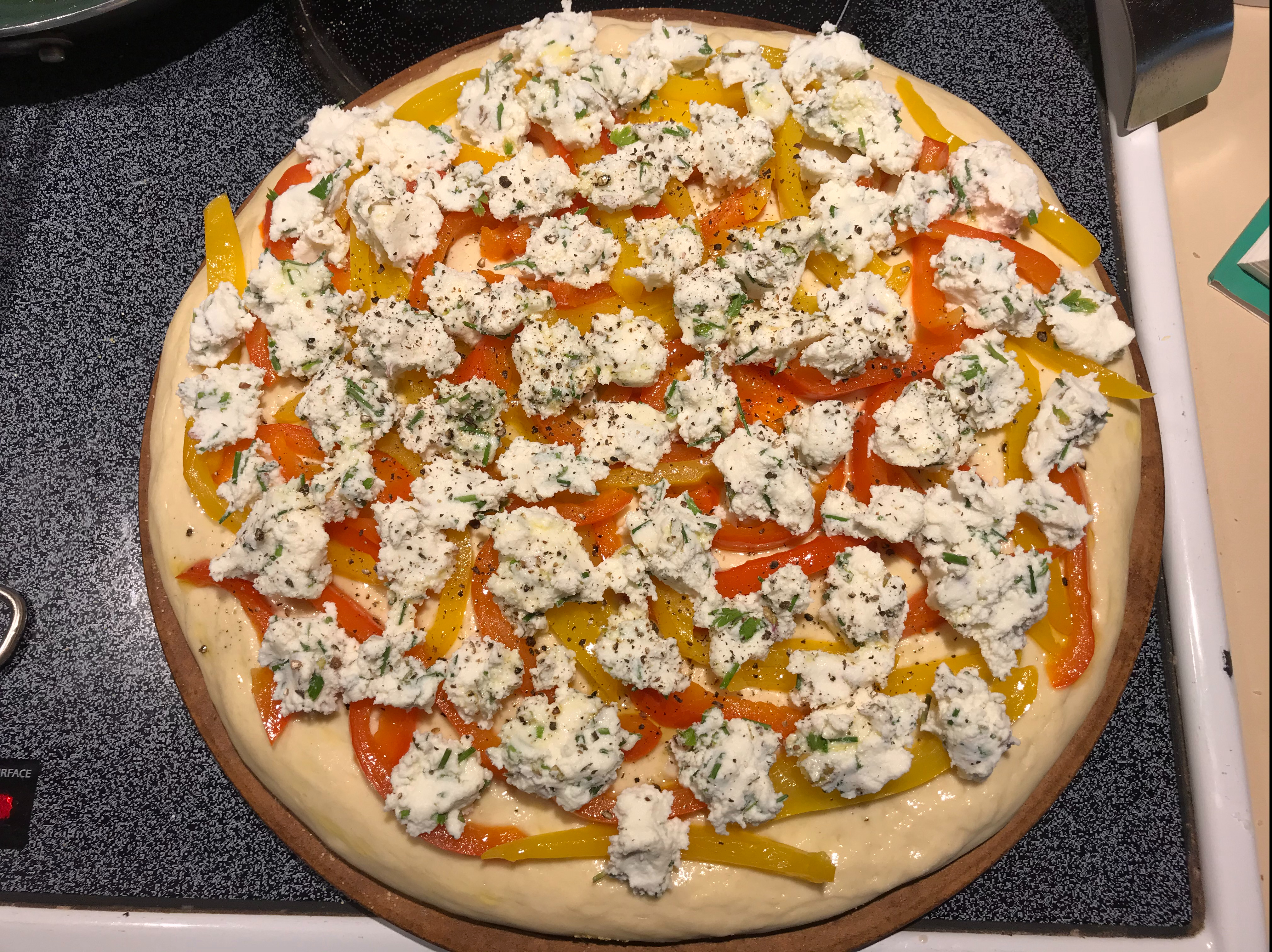 Finally, we have one of the most iconic Italian dishes: a pizza. Three pizza recipes are featured in the text, but none of them are the stereotypical takeout or delivery staple. None of these recipes have tomato sauce, pepperoni, or sausage, and only one of them has mozzarella cheese. Not that there is anything wrong with the American staple, far from it, but it is nice to have a change of pace from time to time. In this case we have pizza dough topped with garlic-infused oil, sauteed bell peppers, and ricotta salata mixed with herbs.
