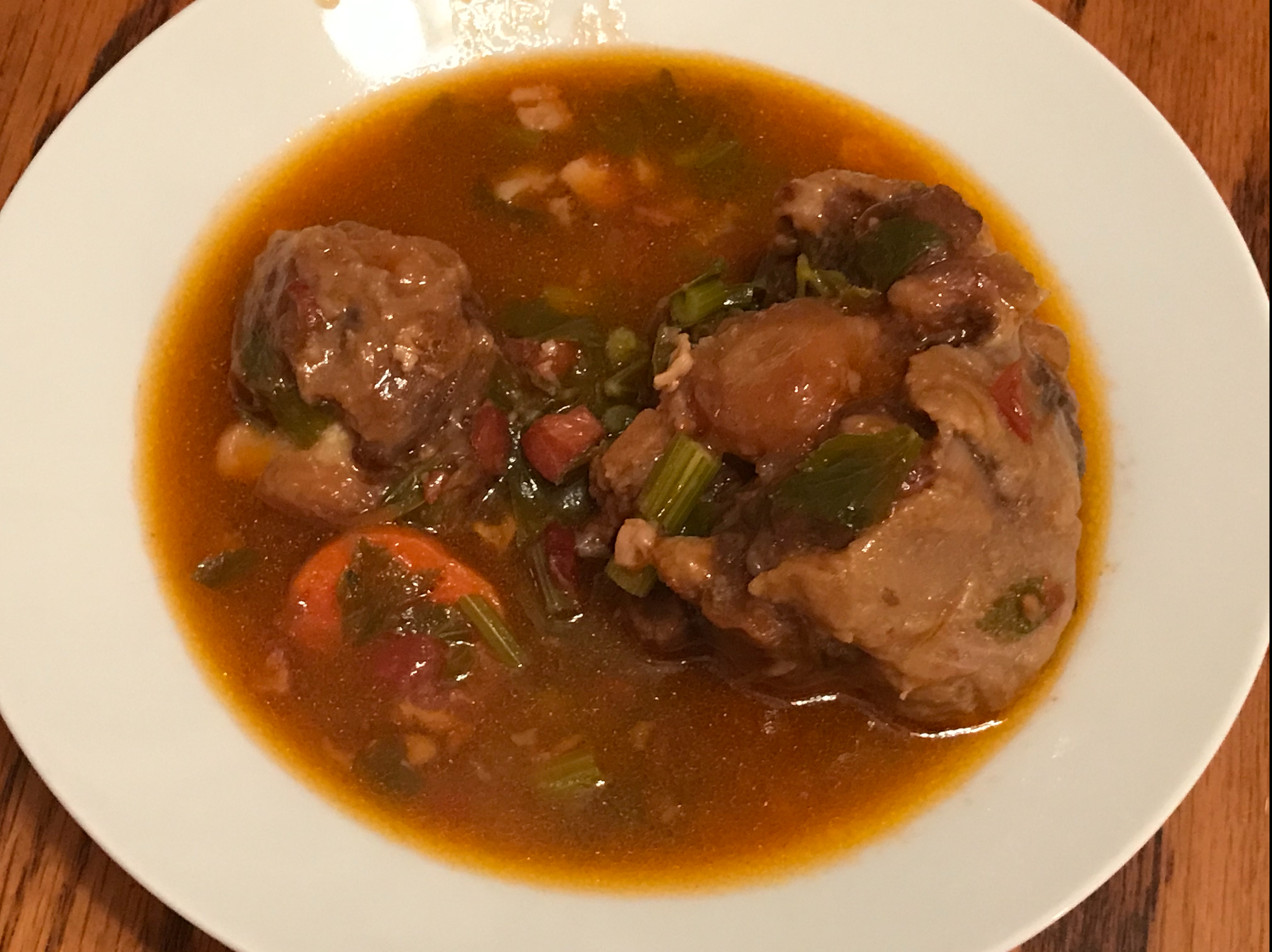 The taste and texture of this stew were both remarkable. The combination of broth, grape juice, tomatoes, and aromatics lent a pleasant, slightly sweet-tart flavor, while the collagen from the oxtail created a rich, almost sticky body. It was definitely messy to eat, though, since the meat stuck to the bones despite its tenderness and could not easily be removed with a fork and knife. Fingers and a lot of patience were required. That’s not to say I wouldn’t make it again. Add some bread and maybe a salad, and it’s clear why this dish remains so popular. Just make sure you have plenty of napkins.