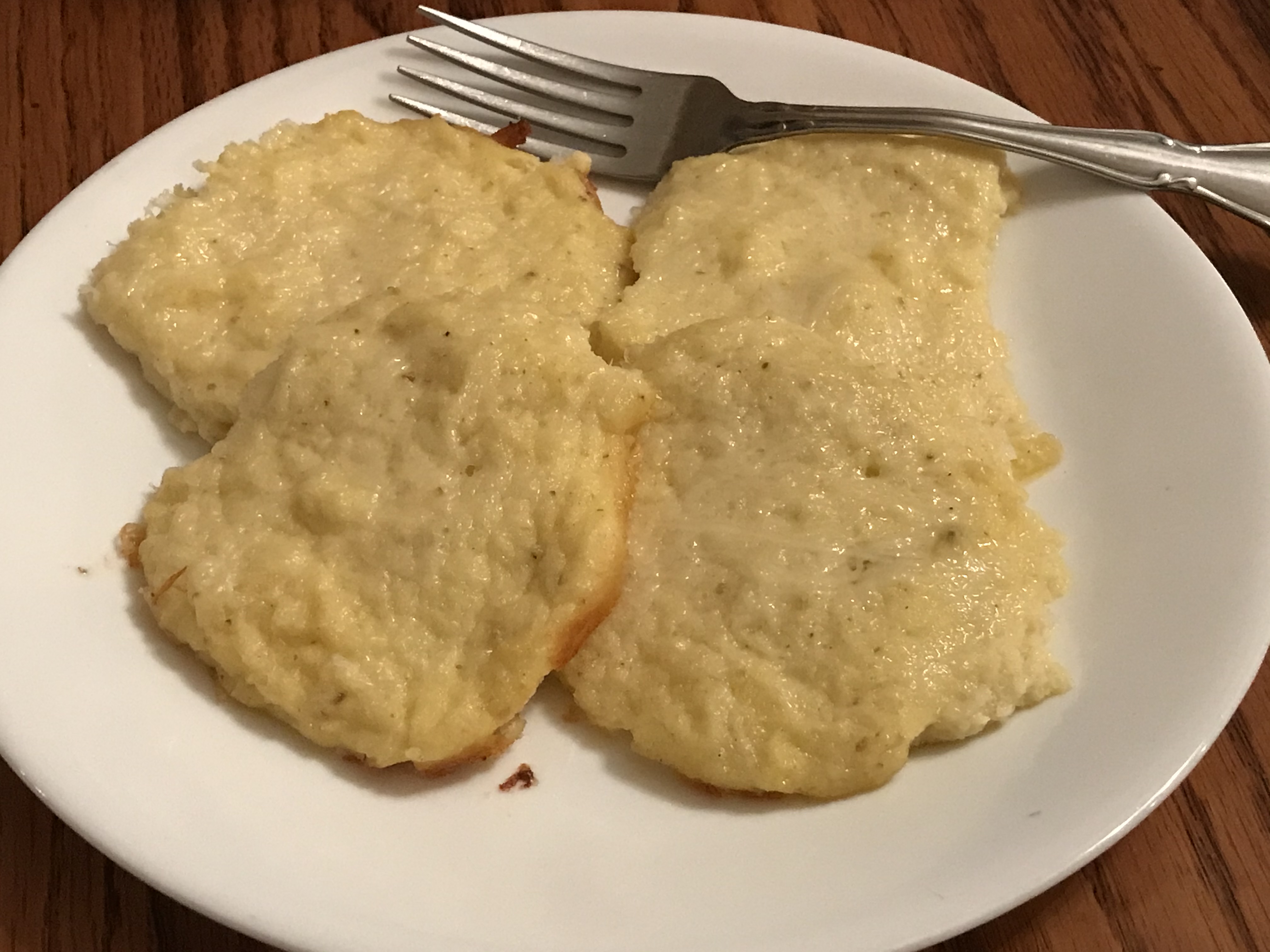 The next course was Roman-style gnocchi. Gnocchi are Italy’s version of the dumpling, the starchy filler to soak up the flavor of whatever it’s cooked with, found in various forms around the world. In most parts of Italy they are potato-based. What makes the Roman kind special is that they are made with semolina flour cooked in milk with nutmeg. Parmesan cheese and eggs are added to bind the mixture before it is cooled and cut into rounds. These are then topped with butter and more parmesan cheese and baked. I had some difficulty with these. The mixture didn’t firm up as much as I expected during cooling, which made cutting the circles out (with a glass) difficult. I ultimately resorted to forming them manually and layering them on the baking pan. My hands were a mess after this, but it worked pretty well. The end result was slightly crispy on the outside, soft and almost custardy on the inside, and delightfully rich.