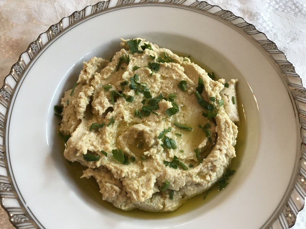 - Spoon hummus into a bowl. If desired, drizzle with olive oil and garnish with parsley, olives, roasted peppers, etc. (In the Middle East, pomegranate seeds are a popular garnish).