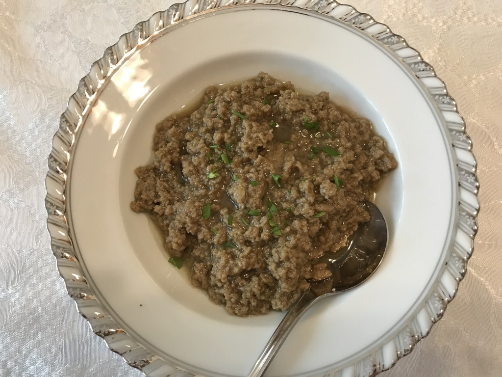 Tahini actually makes a fascinating, although distinctly bitter, dip on its own. Personally I prefer it sweetened for halva or used for hummus, but the bittersweet flavor is beloved across the Middle East. Here its flavor is further enhanced with garlic, salt, and lemon juice. All you have to do is crush 1 garlic clove with ¼ teaspoon salt in a mortar and pestle until it becomes a sticky paste. Stir the garlic paste into ½ cup of tahini, and mix in 2 teaspoons lemon juice and 2 tablespoons water. The paste will appear to “seize,” just keep stirring to smooth it out. Don’t add more water, which will make the oil separate out. Place in a bowl and serve with pita bread and/or vegetables (during the late summer and early fall, fresh carrots are particularly tasty).